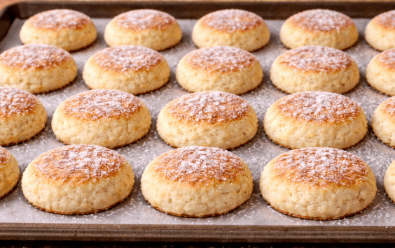 - Disponha os biscoitos em uma forma forrada com papel manteiga, deixando espaço entre eles.