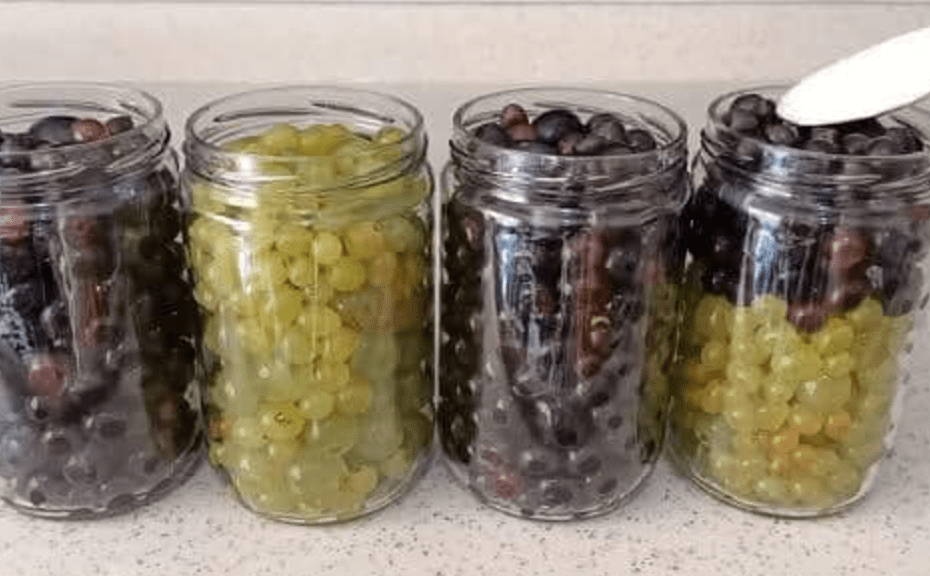 - Coloque as uvas nos frascos, organizando-as para aproveitar o espaço. Para um visual mais atrativo, faça camadas com diferentes variedades.