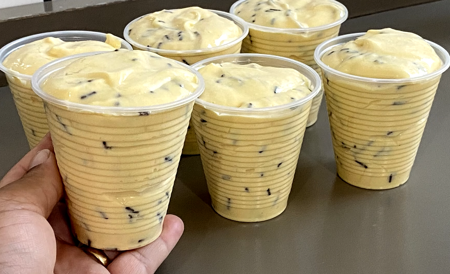 3. Distribua essa mistura no fundo de uma forma de cupcake (forma de muffin).