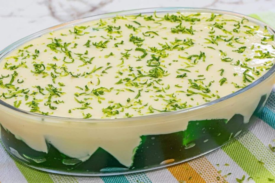 - Despeje a mousse de limão por cima dos cubinhos de gelatina, decore com raspas de limão a gosto e leve para gelar por no mínimo 2 horas.