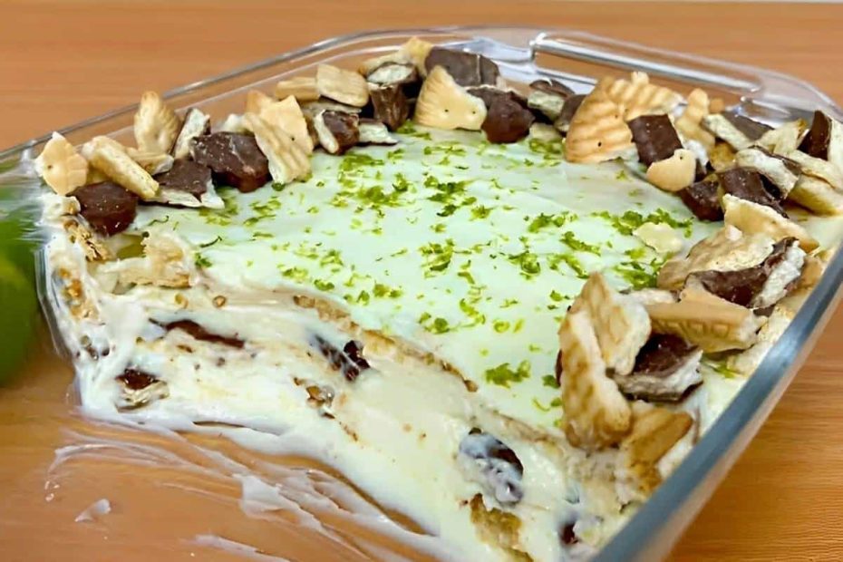 Para preparar essa delícia, usaremos: creme de leite, leite condensado, suco de limão e cream cheese. Vamos colocar no liquidificador os ingredientes do creme e bater até ficar bem aerado e liso. Depois vamos montar a sobremesa num refratário, fazendo camadas alternadas de creme e biscoitos maisena e choco biscuit, até acabar os ingredientes, terminando com o creme. Na sequência, salpicaremos raspas de limão por cima, enfeitaremos a lateral do refratário com pedaços de biscoito e levaremos para a geladeira durante 3-4 horas. Pronto, agora é só servir e se deliciar com essa sobremesa rápida maravilhosa!