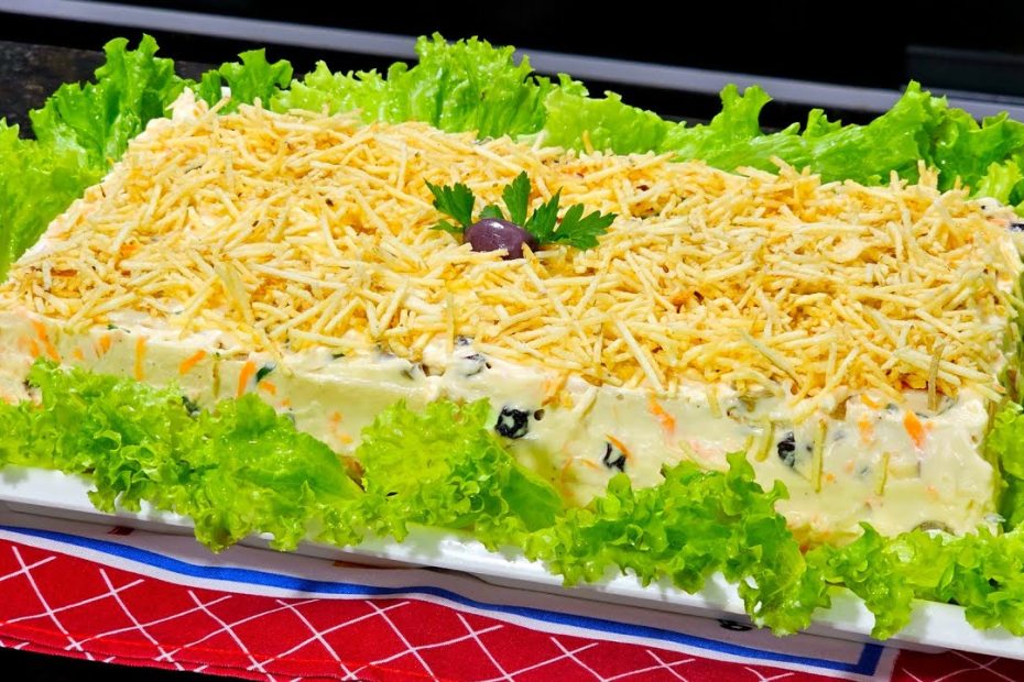 Uma torta salgada fria perfeita para as festas de fim de ano. Econômica, fácil de preparar, bonita na mesa e extremamente saborosa. Ideal para o Natal, Ano-Novo, confraternizações ou como acompanhamento de carnes e churrascos.